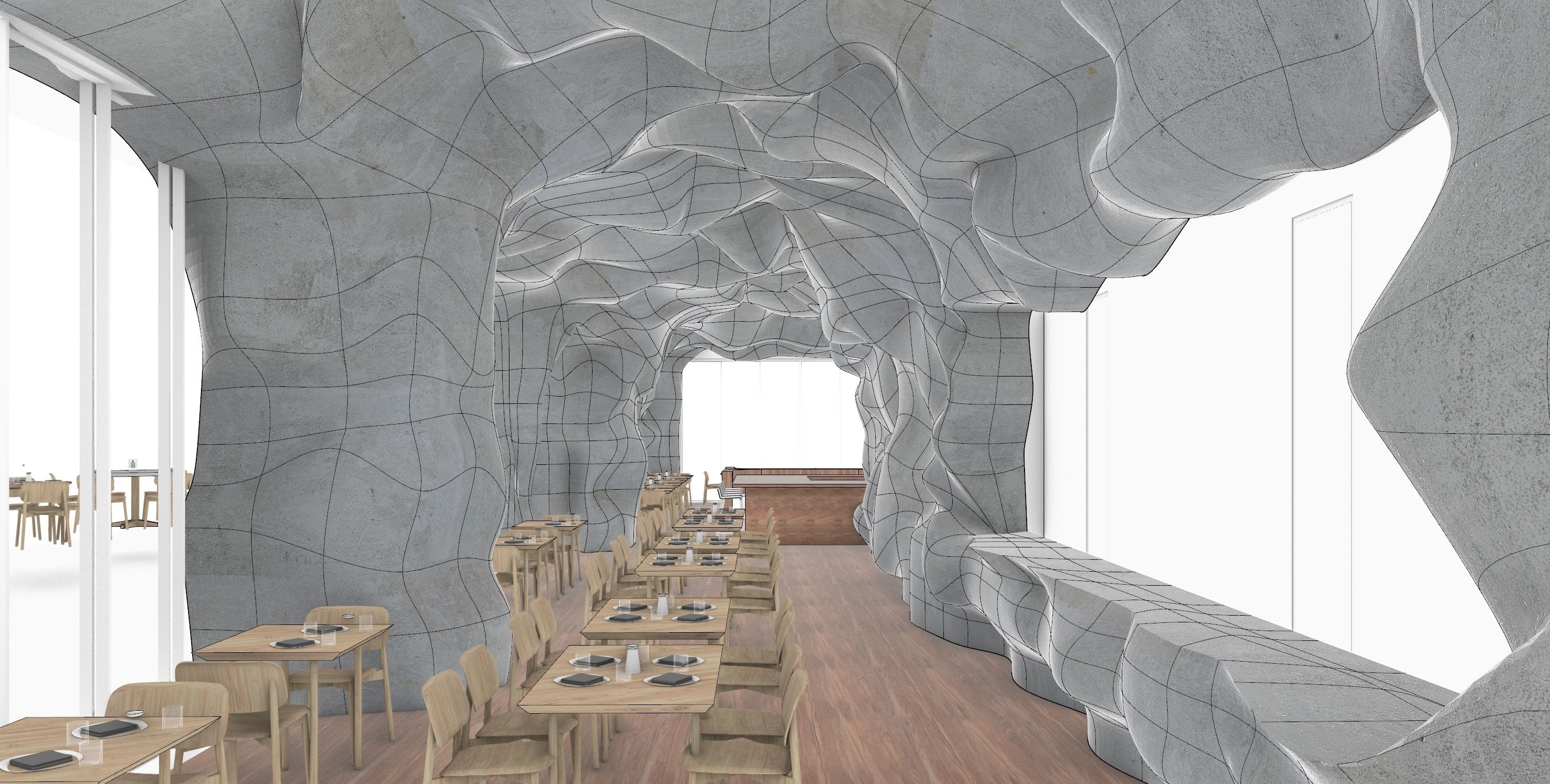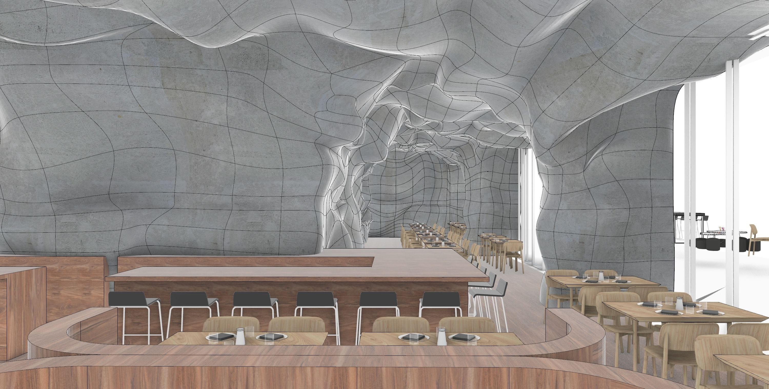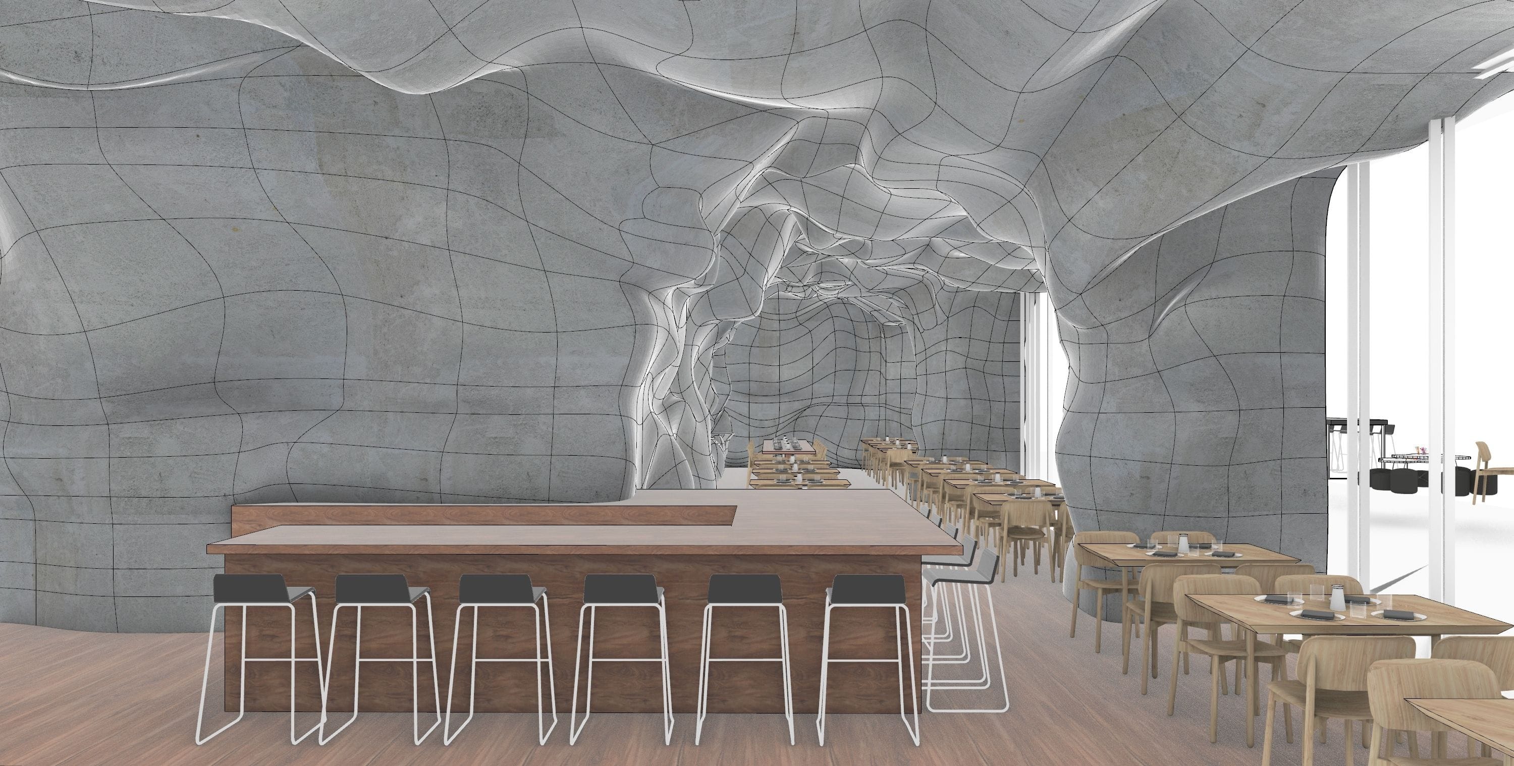 Over the past three years, Austen has specialized in 3D modeling and rendering the intricate forms of the 86 HQ Bocci building, focusing on both interior and facade. Utilizing Blender, Rhino, and Unreal for VR simulations, creating detailed physical mock-ups and coordinated technical drawings in Revit and CAD. The 50,000 ft², 5-story building in Vancouver, Canada, designed for Bocci, includes exhibition spaces, a restaurant, bicycle parking, interconnected glass ateliers, studios, and more. Innovative construction techniques, like using hay bales wrapped in loose fabric for concrete formwork, resulted in unique interior volumes and window forms. The building’s location between residential and industrial neighborhoods makes it a community focal point.