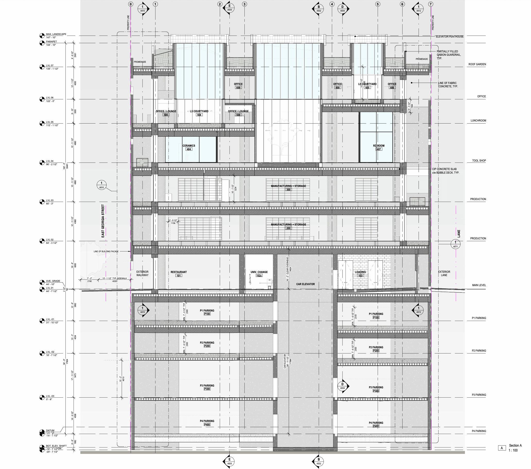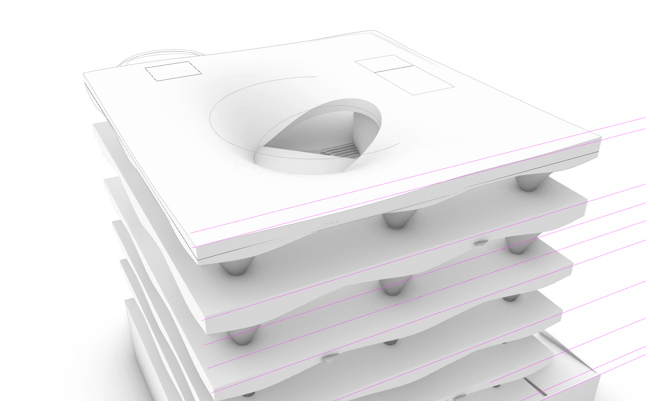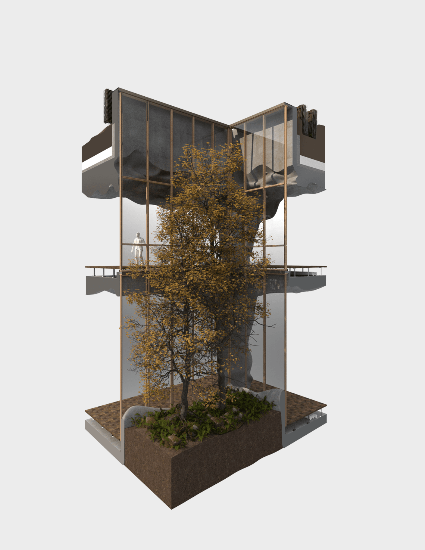 Over the past three years, Austen has specialized in 3D modeling and rendering the intricate forms of the 86 HQ Bocci building, focusing on both interior and facade. Utilizing Blender, Rhino, and Unreal for VR simulations, creating detailed physical mock-ups and coordinated technical drawings in Revit and CAD. The 50,000 ft², 5-story building in Vancouver, Canada, designed for Bocci, includes exhibition spaces, a restaurant, bicycle parking, interconnected glass ateliers, studios, and more. Innovative construction techniques, like using hay bales wrapped in loose fabric for concrete formwork, resulted in unique interior volumes and window forms. The building’s location between residential and industrial neighborhoods makes it a community focal point.