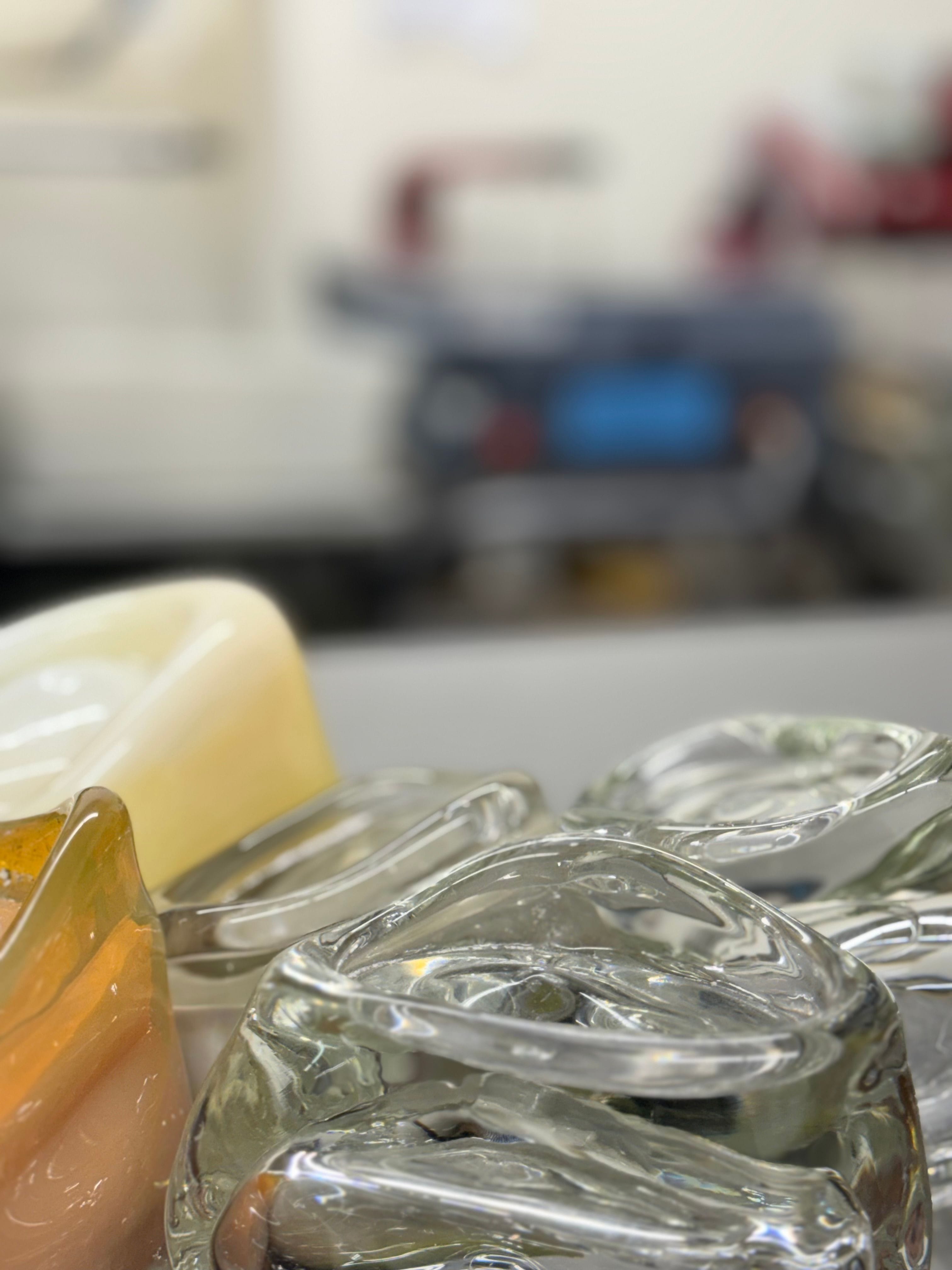 POGO is a design and materials research studio co-founded by Austen Goodman and Nathaniel Vince. We work across glass, resin, and cast materials to develop objects that make you say "I kind of want to eat it." The studio operates as an ongoing experiment: we art direct together toward a cohesive visual language while pushing materials into territory most studios haven't explored. That means unusual color combinations, surface treatments borrowed from other industries, and forming techniques that expose what a material can do when you stop being careful with it. Current work spans architectural lighting, decorative objects, and large-scale installations. We're in active prototyping, learning the limits of the materials and finding where to break them.